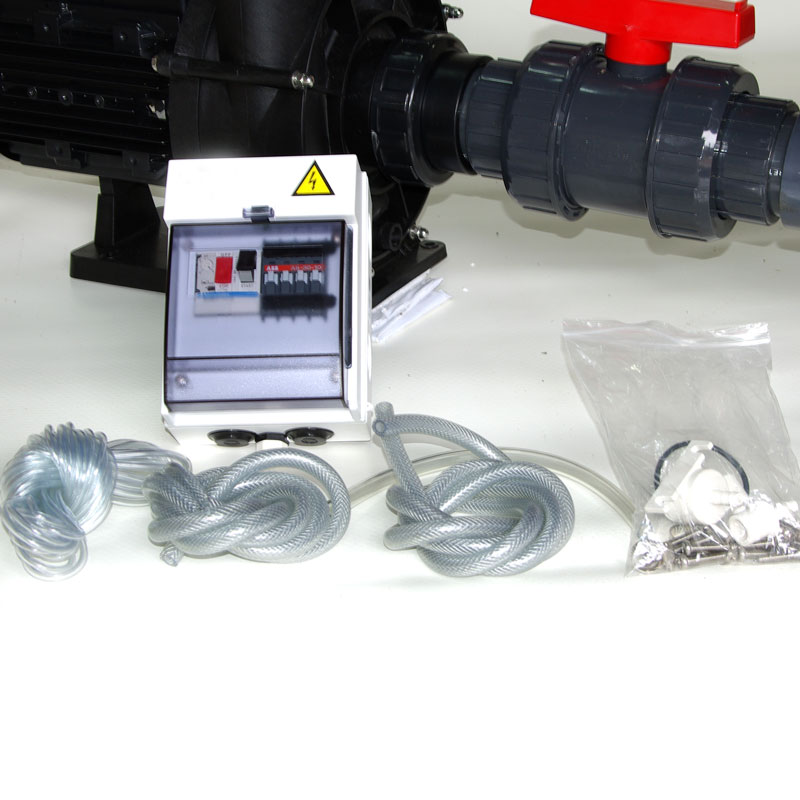 Alle relevanten Einbauteile wie Blende, Pumpe, Steuerkasten, Kugelhähne d=75 mm, Anleitung u. v. m. - Welche Zusatzoptionen gibt es?