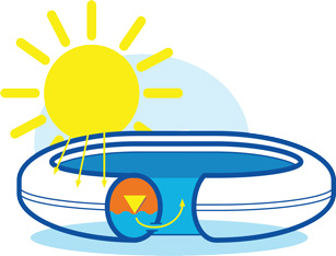 Dank des einzigartigen Systems der Wasserumwälzung wirkt der Wulst eines Zodiac Original™ Pools bei den Modellen Winky und Ovline wie ein Wärmetauscher. Die Sonne erwärmt den Wulst, die Temperatur der im Wulst eingeschlossenen Luft steigt und erwärmt das im Wulst enthaltene Wasser. Das erwärmte Wasser wird dann zurück in das Becken gepumpt. Dadurch steigt die Temperatur schneller an und ist im Durchschnitt höher als in jedem anderen Aufstellbecken (bis zu +2,5 °C).