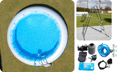 | Form | Modell | Höhe (+/- 5 cm) | Gesamt-Bodenfläche (cm) | Inhalt (m³) | Wasseroberfläche (cm) | Sandfilter (m³/h) | Montagezeit (h) bei 2 Personen |