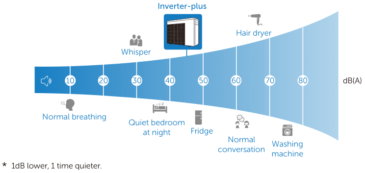 Wenn Sie die Pooltemperatur mit einer durchschnittlichen Leistung von 50% halten, kann der durchschnittliche Schalldruck einer Inverter-plus-Poolwärmepumpe Ihnen eine zehnmal ruhigere Schwimmbadumgebung und eine freundlichere Nachbarschaft bieten als eine Ein/Aus-Poolheizung.